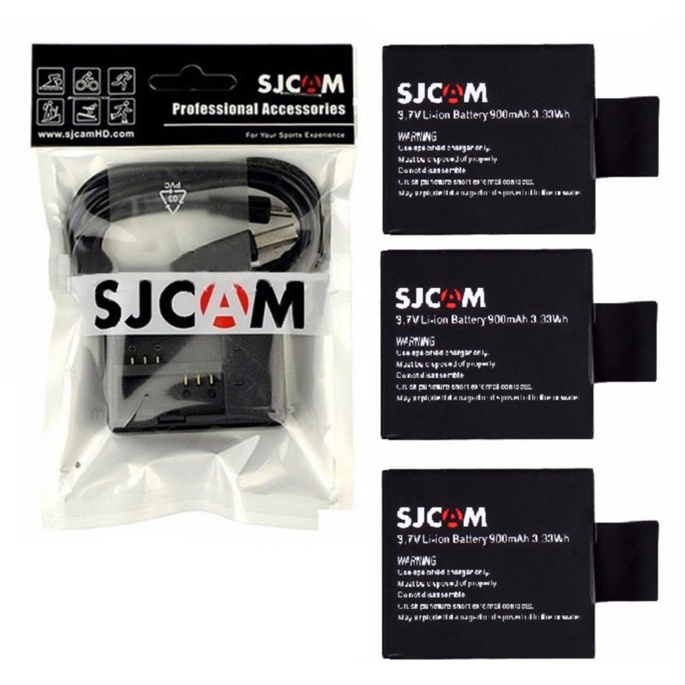 Combo sạc đôi + 3 viên pin cho camera hành động SJCAM, EKENViên pin có dung lượng 900mAh. Dock sạc đôi có thể sạc đồng thời 1 lúc 2 viên pin. Cổng kết nối với nguồn điện là đầu USB nên linh động có thể sạc với nguồn điện trực tiếp hoặc với sạc dự phòng.
