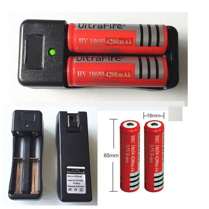 Combo sạc đôi kèm 2 pin 3.7V dùng cho đèn pin quạt mini dung lượng 4200mAh