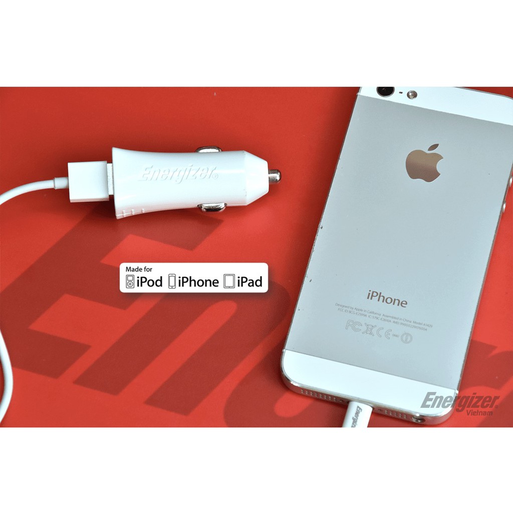 2. Sạc Ô tô Energizer UL 3.4A 2 USB kèm 1 Cáp Lightning DCA2CULI3