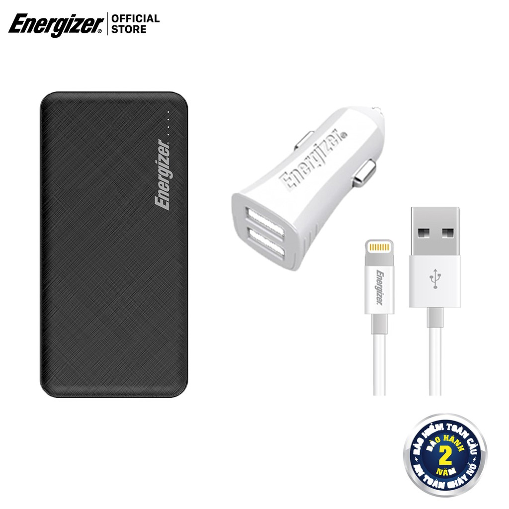 Combo sạc dự phòng 10,000mAh UE10053 + Sạc Ô tô Energizer UL 3.4A 2 USB kèm 1 Cáp Lightning DCA2CULI3