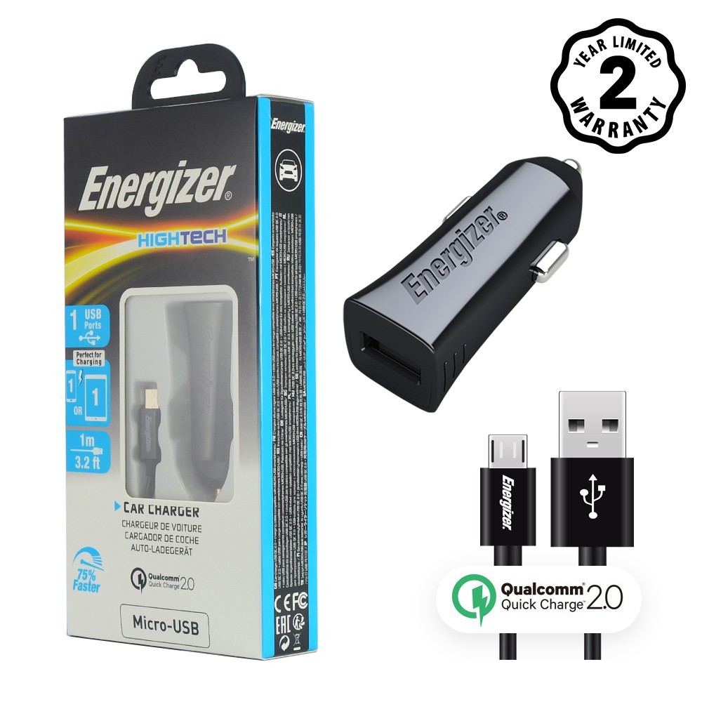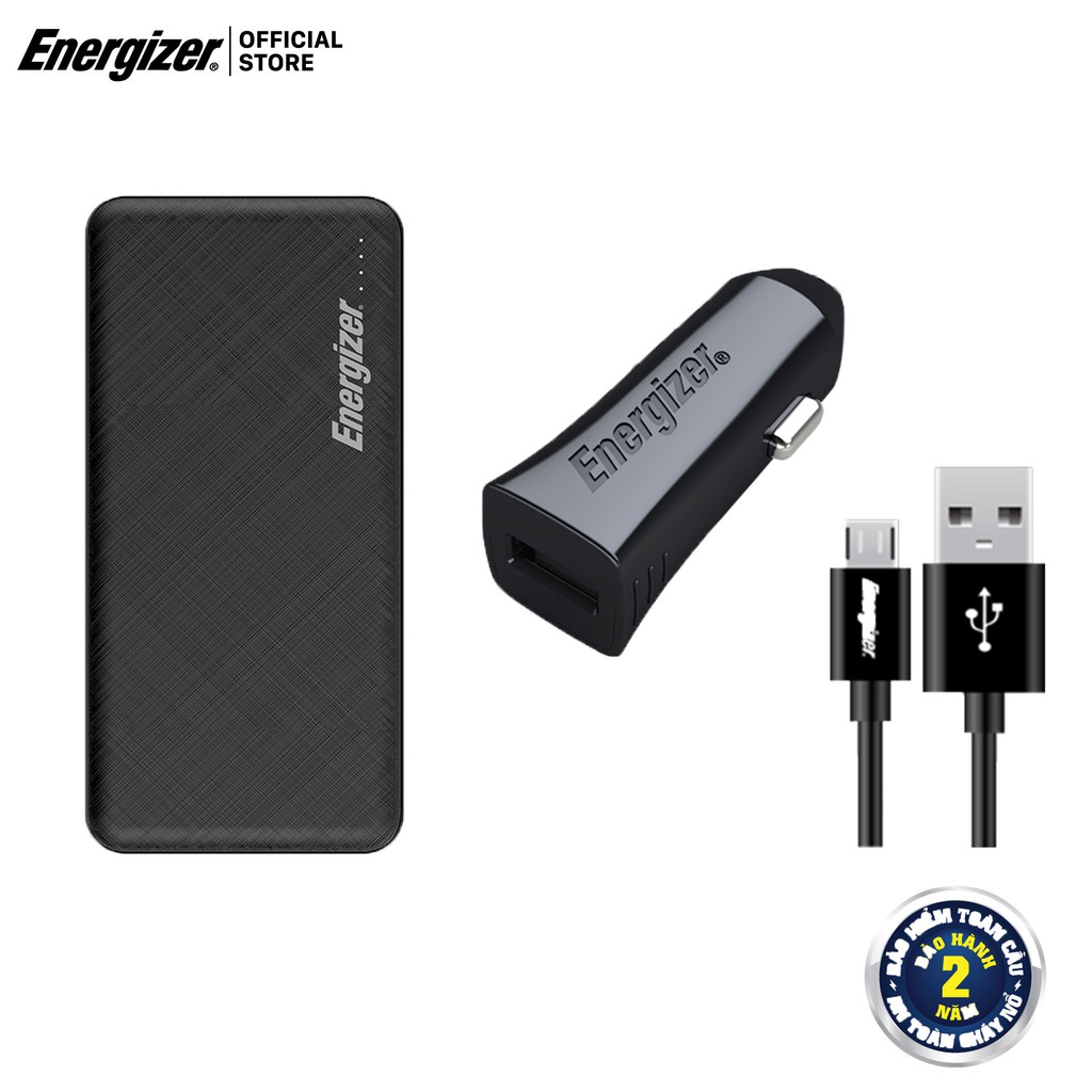 Combo sạc dự phòng Energizer 10,000mAh UE10053 + sạc ô tô Quick Charge Qualcom 2.0 kèm cáp Micro USB - DCA1QHMC3