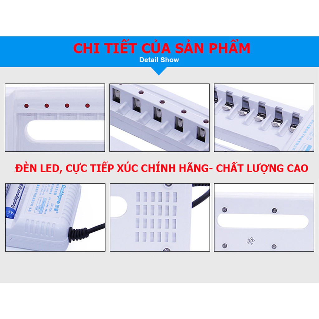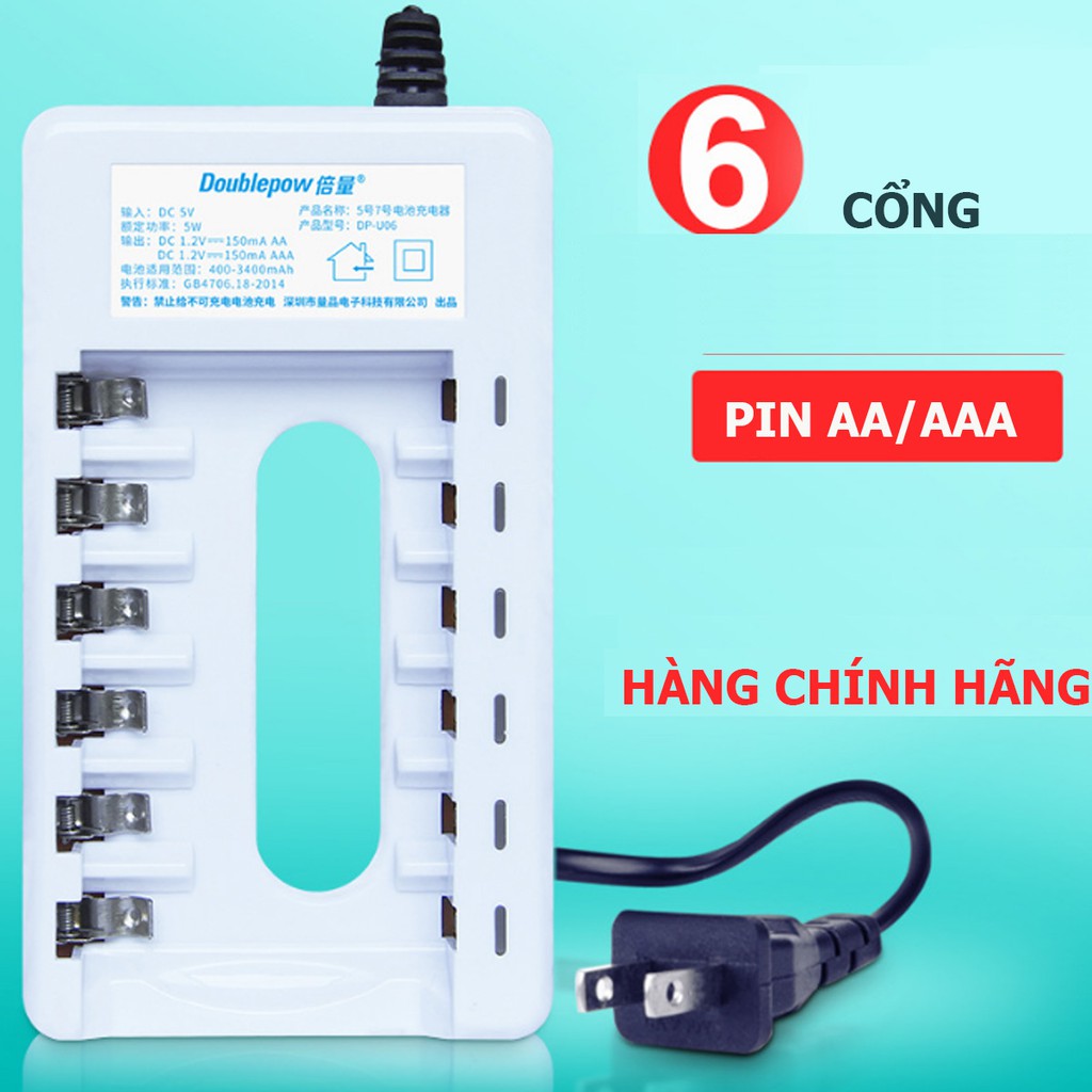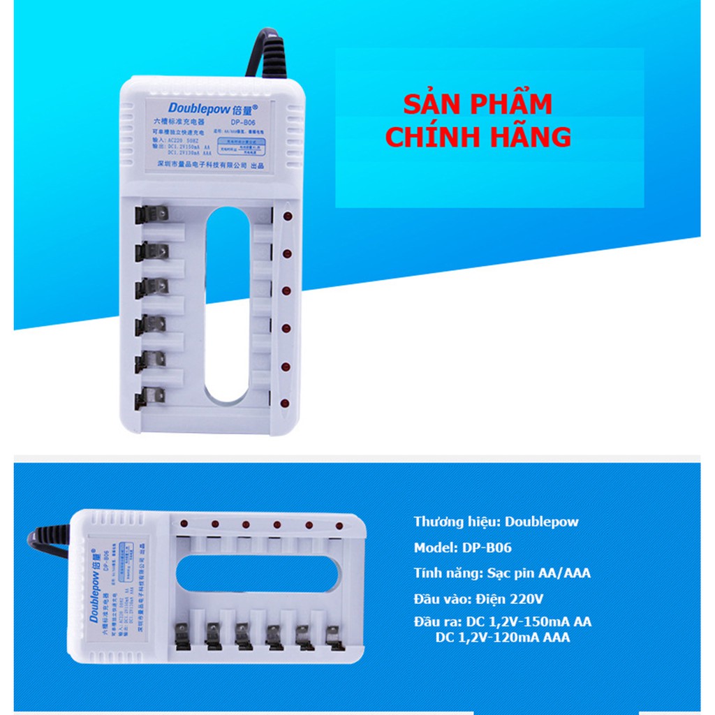 Cameras & Flycam > Phụ kiện máy ảnh > Bộ sạc pin || Combo Sạc pin 6 cổng, sạc AA, AAA chất lượng cao DP-B06 - DoublePow + tặng kèm 04 viên pin AA 1200mAhCòn hàng