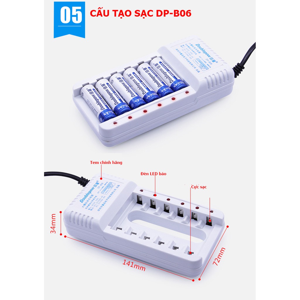 Combo Sạc pin 6 cổng, sạc AA, AAA chất lượng cao DP-B06 - DoublePow + tặng kèm 04 viên pin AAA 900mAh