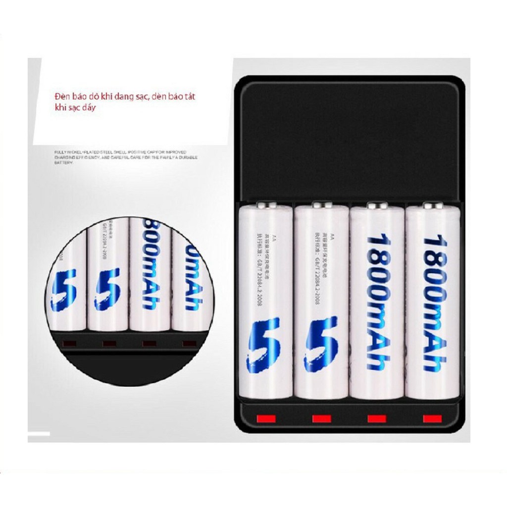 Combo Sạc Pin Và 4 Pin Tiểu Sạc Palo AA 1800mAh Cho Xe điều khiển, Đồ chơi, Chuột Máy Tính...