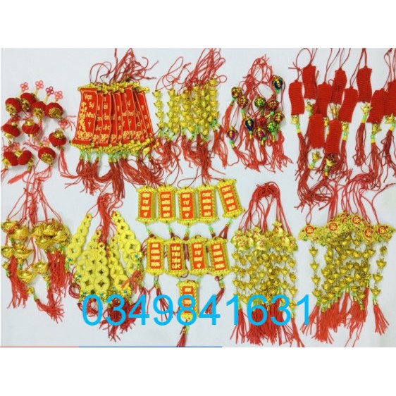 - Sỉ 10 gói dây treo trang trí tết , mỗi gói 10 dây.- 10 loại khác nhau hàng được mạ vàng bóng rất đẹp