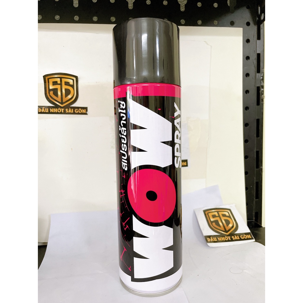 WOW Spray (Vệ sinh sên xích cao cấp- chai lớn)Công dụng: Rửa sên xích, tẩy dầu mỡ siêu nhanh, siêu sạch cho các loại sên O-X-Z-ring.