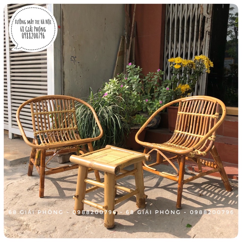 Bộ 2 ghế mây sò tự nhiên kết hợp bàn tre nhỏ (tặng kèm lót ghế)-Kích thước ghế: Ghế rộng tới 52cm, chân ghế cao 30cm, lưng ghế cao 58cm