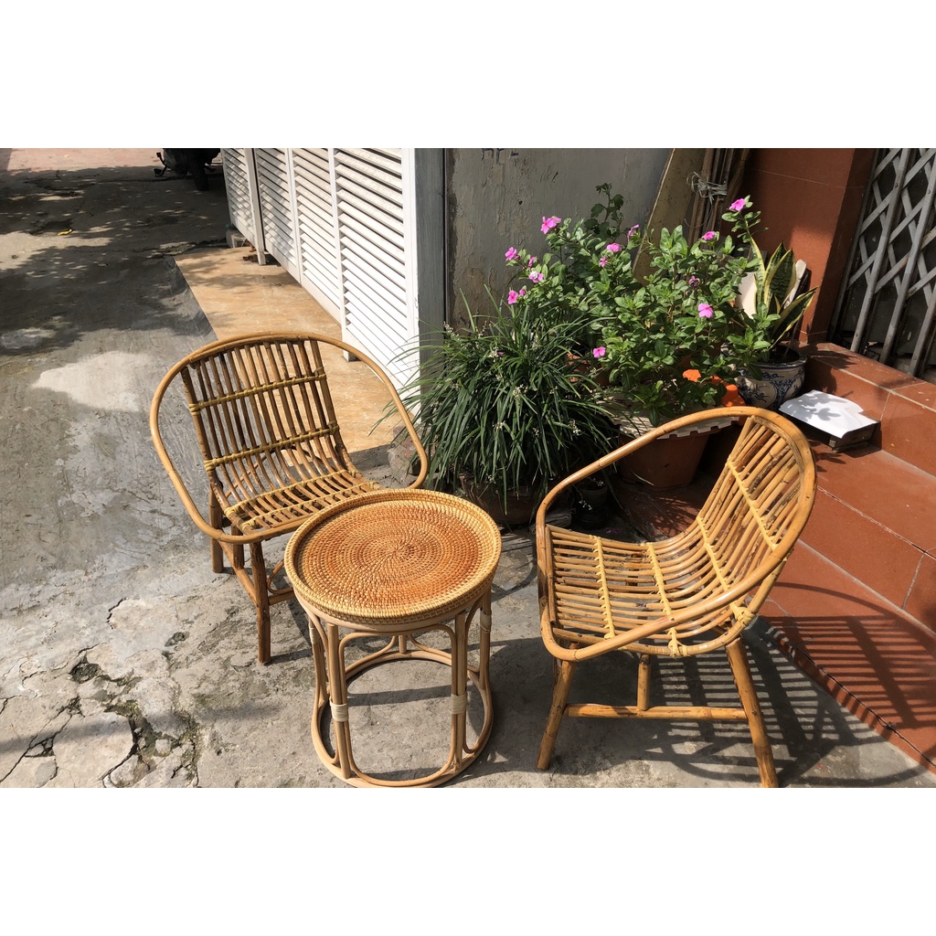 Nhà cửa & Đời sống > Nội thất > Ghế, ghế dài, ghế đẩu || (Combo siêu hời) Bộ bàn ghế mây sò tự nhiên nhỏ gọn, tiện lợi phù hợp bộ Cafe / ban công gia đình / HomestayCòn hàng