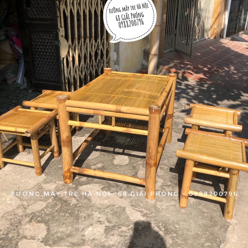 Bàn ghế đóng mộc 100% tre tự nhiên, đã qua xử lý chống ẩm mốc, mối mọt