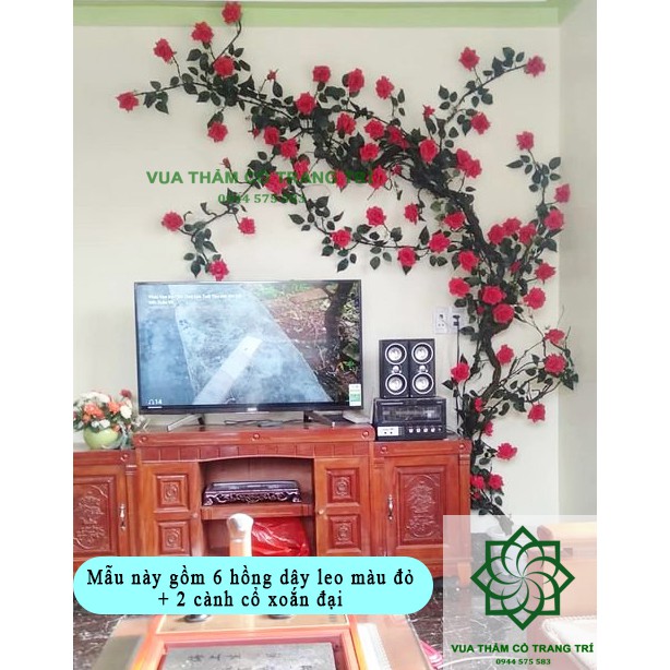 Nhà cửa & Đời sống > Trang trí nhà cửa > Hoa trang trí || Combo số 10_Hồng dây leo treo tường (6 dây Hồng leo màu đỏ+2 cành cổ xoắn đại)Còn hàng