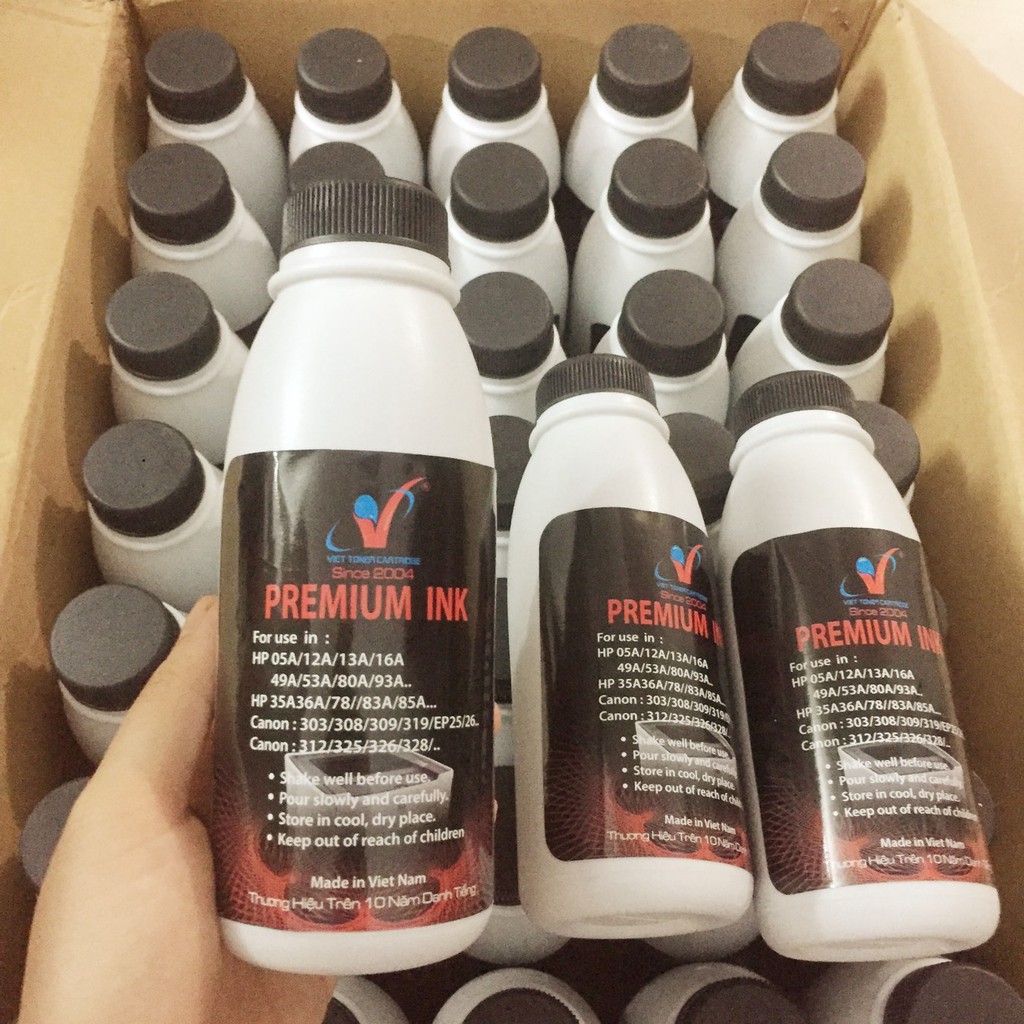 • Mực máy in dùng chung cho các hộp mực to: 1010/1015/1018/1160/1320/P2014/P2015/P2035/P2055/Pro400/M401N...CN LBP 1210/2900/3000/3300/3500/3900/3920/3950/6300dn/6650dn/8100dn/3310/3370...