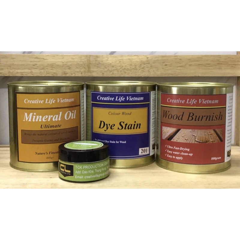 Sản phẩm thuộc thương hiệu Creative Life Vietnam.Bộ sơn Dye Stain 4 sản phẩm bao gồm: