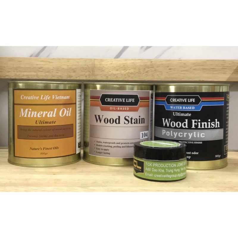 Nhà cửa & Đời sống > Dụng cụ & Thiết bị tiện ích > Sơn & chất chống thấm tường || Combo Sơn lau gỗ Wood Stain Creative Life Vietnam hoàn thiện bóng mờ mã 1xxCòn hàng