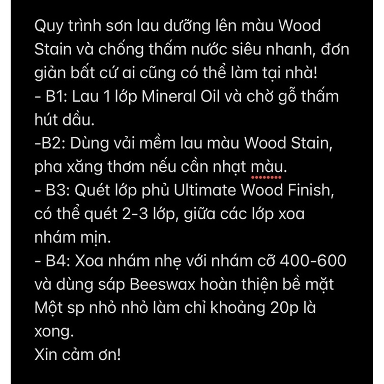 - 1 dầu khoáng siêu dưỡng, hỗ trợ lên màu, hạn chế mối mọt cong vênh Ultimate Mineral Oil 800g