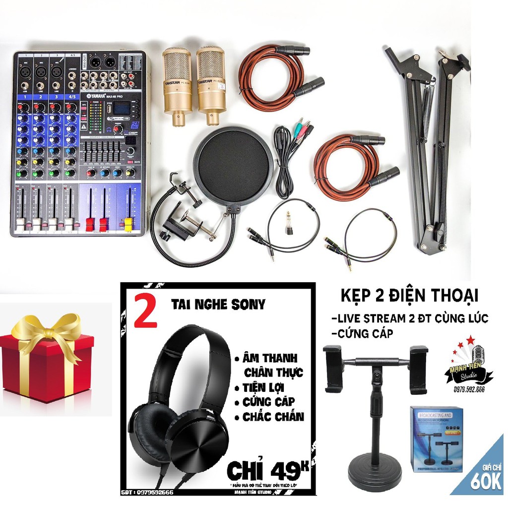 Thiết Bị Âm Thanh > Micro thu âm || Combo song ca thu âm hát karaoke online cực hay mixer max 68 và 2 micro K200 tặng kèm full phụ kiện bảo hành 12 thángCòn hàng