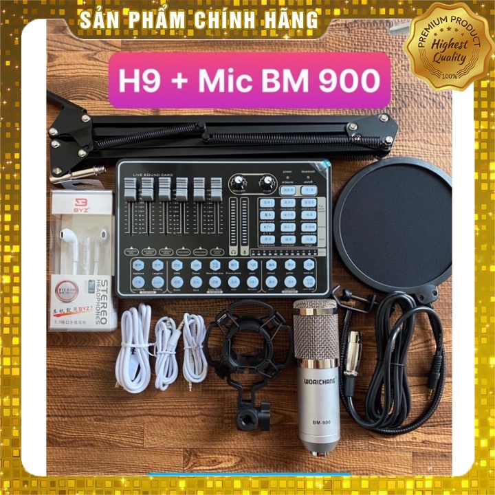 Combo Sound Card H9 Mic Thu Âm BM 900 Có Auto Tune Tặng Kèm Chân Kẹp , Màng Lọc , Tai Nghe , Bảo Hành Lên Đến 6 Tháng