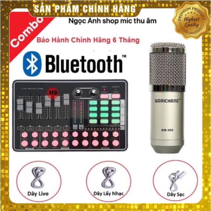 [Mã ELHACE giảm 4% đơn 300K] Combo Sound Card H9, Micro Thu Âm BM 900 - Siêu Phẩm Hát Livestream Karaoke 2020