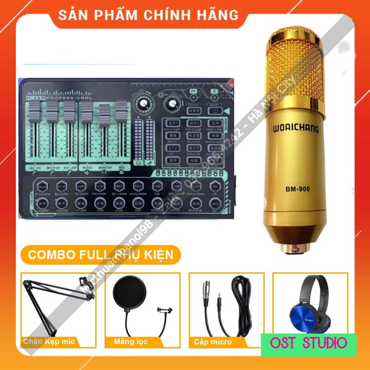 Combo Sound Card H9 Micro Thu Âm BM 900 Có Auto Tune Tặng Kèm Chân Kẹp , Màng Lọc , Tai Nghe , Bảo Hành Lên Đến 6 Tháng