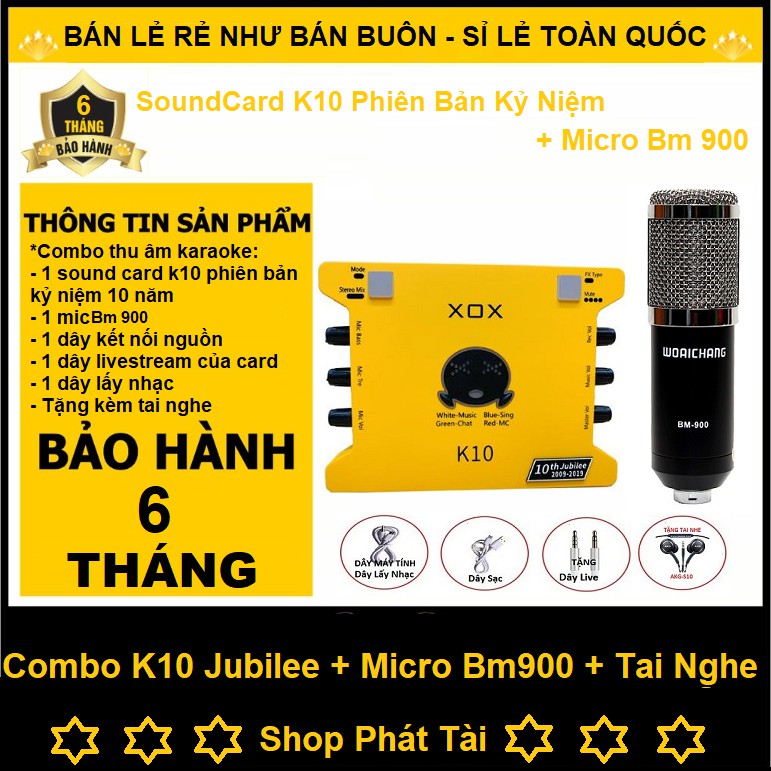 Combo Sound Card K10 Bản Kỷ Niệm 10 Năm - Micro Thu Âm Livestream Bm 900 - Tặng Tai Nghe Bảo Hành 6 Tháng