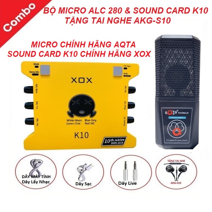 Combo Sound Card K10, Chính Hãng XOX - Tặng Tai Nghe AKG-S10 Micro ALC-280 Chính Hãng AQTA - Bảo Hành 6 Tháng