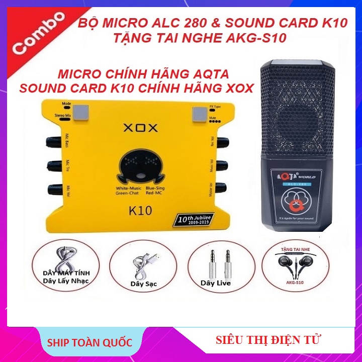 3, Shop Có bán Combo Cả Bộ Bao Gồm : Sound card XOX K10 + Micro Thu âm ALC-280 + Tặng Tai Nghe AKG-S10