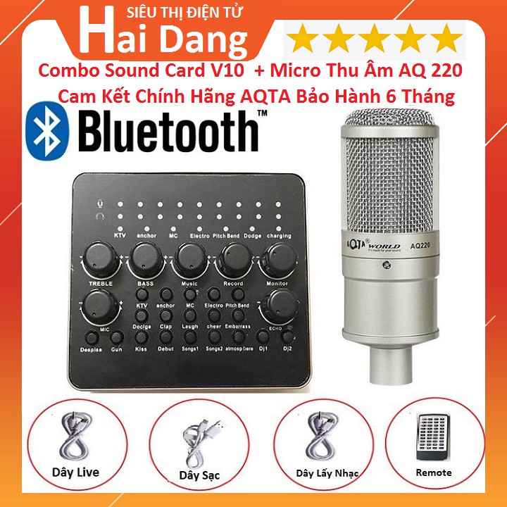 Combo Sound Card V10 Bluetooth + Micro Thu Âm AQ 220 Chính Hãng AQTA Bộ Hay Nhất Hiện Nay Bảo Hành 6 Tháng