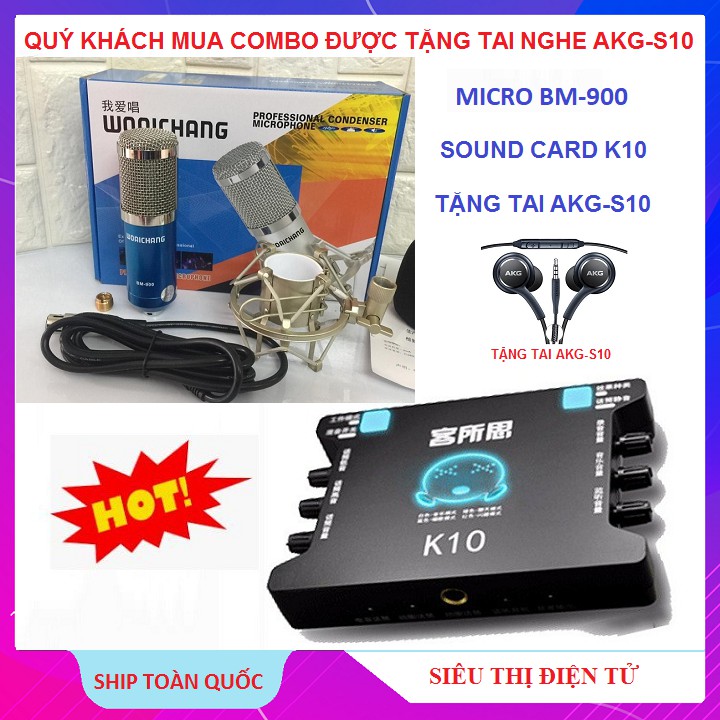 Thiết Bị Âm Thanh > Micro thu âm || Combo Sound Card XOX K10 Nội Địa, Micro thu âm BM900 +Tặng Tai Nghe AKG-S10 Chuyên Dùng Hát LivestreamCòn hàng