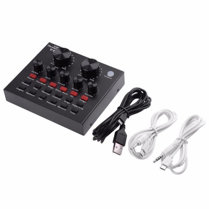 Sound card thu âm V8 là sản phẩm card âm thanh tương thích với nhiều thiết bị như smartphone, laptop, pc, máy tính bảng. Với tính năng làm méo giọng hát, thành giọng trẻ em, người già, Khả năng chèn các hiệu ứng âm thanh vào các đoạn thu như tiếng vỗ tay, tiếng hò reo, nhạc cổ vũ, tiếng chim kêu... với 12 hiệu ứng âm thanh, sẽ đem lại cho bạn trải nghiệm thu âm vô cùng thú vị.