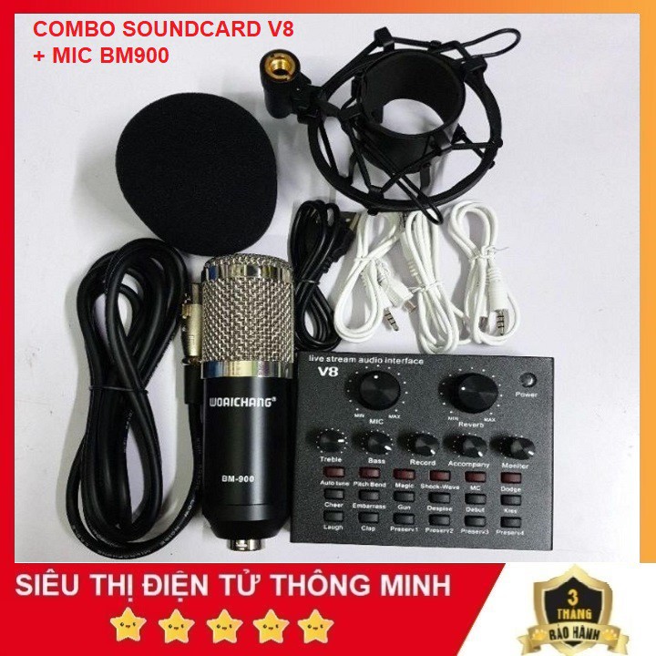 Combo Bộ sản phẩm bao gồm :1. Sound card V8 Phiên Bản Quốc Tế ( Tiếng Anh )