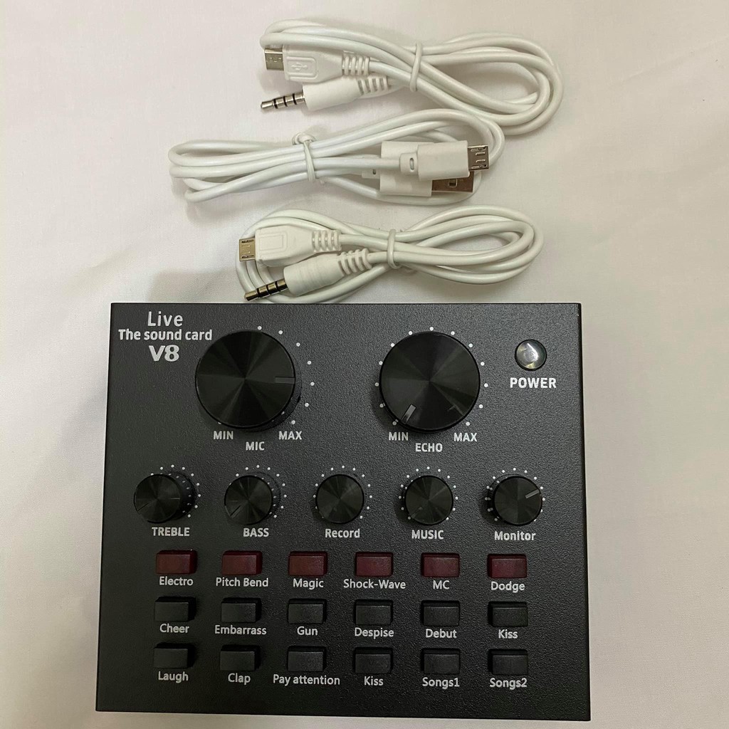 Sound card thu âm V8 là sản phẩm card âm thanh tương thích với nhiều thiết bị như smartphone, laptop, pc, máy tính bảng. Với tính năng làm méo giọng hát, thành giọng trẻ em, người già, Khả năng chèn các hiệu ứng âm thanh vào các đoạn thu như tiếng vỗ tay, tiếng hò reo, nhạc cổ vũ, tiếng chim kêu... với 12 hiệu ứng âm thanh, sẽ đem lại cho bạn trải nghiệm thu âm vô cùng thú vị.