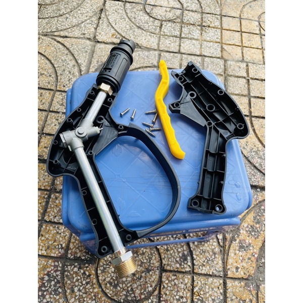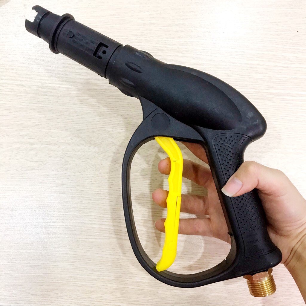 - Súng rửa xe dùng cho máy rửa xe cao áp, súng rửa xe được làm bằng chất liệu nhựa ABS siêu bền, cầm chắc tay.