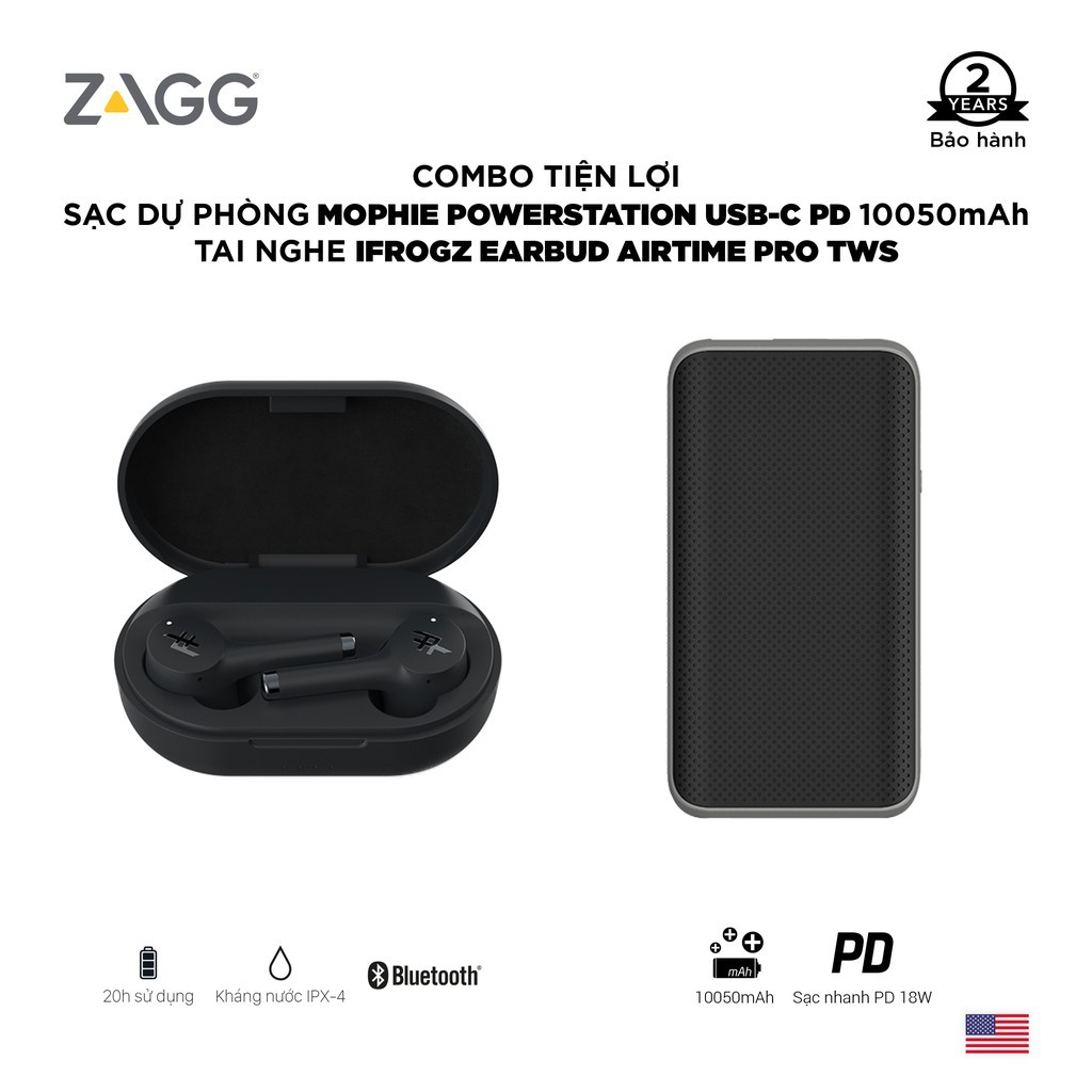 Combo: Tai nghe iFrogz earbud không dây Airtime Pro - Sạc dự phòng Mophie Powerstation USB-C Power Delivery 10050mAh