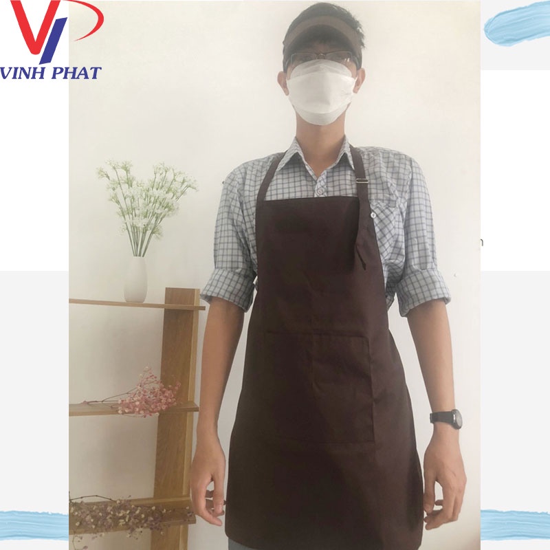 Combo Tạp Dề Dài + Nón Nửa Đầu Màu Nâu Phục Vụ Đẹp - VĨNH PHÁTChất liệu: Kaki 65.35, chất vải đẹp, ít nhăn, dễ giặt tẩy, thời giản sử dung và bảo quản lâu dài