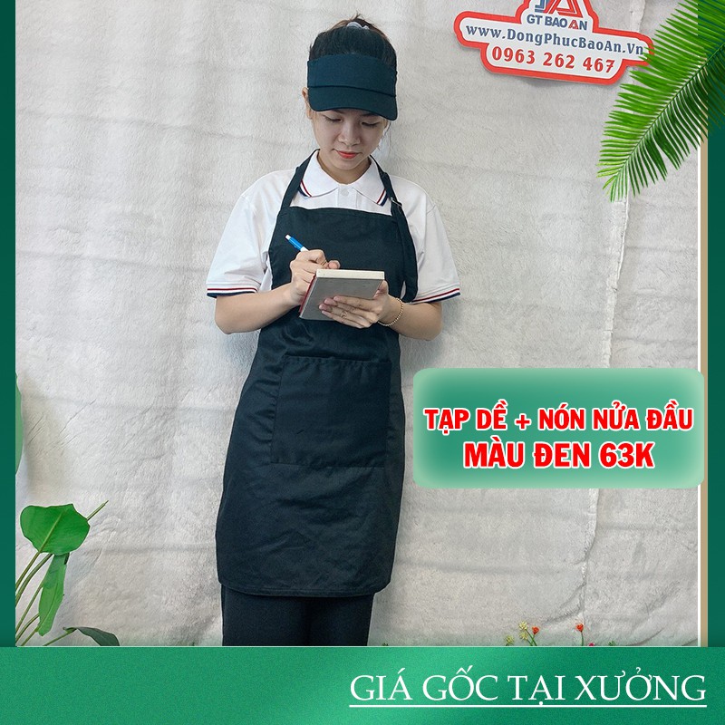 Combo Tạp Dề Dài Phục Vụ + Nón Nửa Đầu Màu Đen Siêu Dễ Thương Giá Sốc