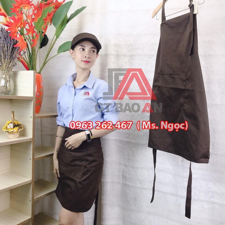 Quy cách: Tạp dề ngắn, có 2 dây cột sau 63 cm, có 1 túi đựng phía trước đựng sổ order hoặc vật dụng cần thiết