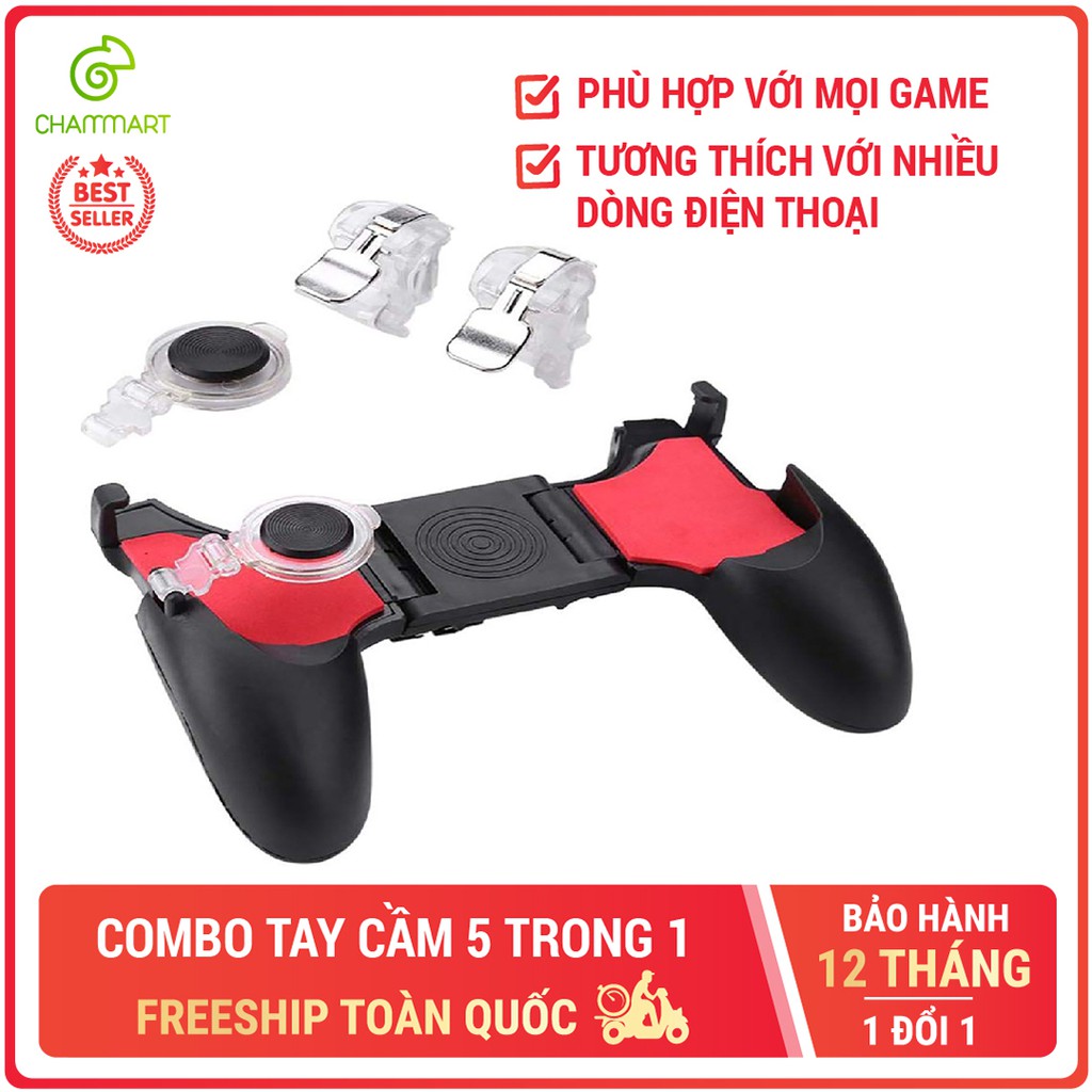 Combo tay cầm 5 trong 1 chơi game mobile Free Fire PUBG ROS làm mát máy