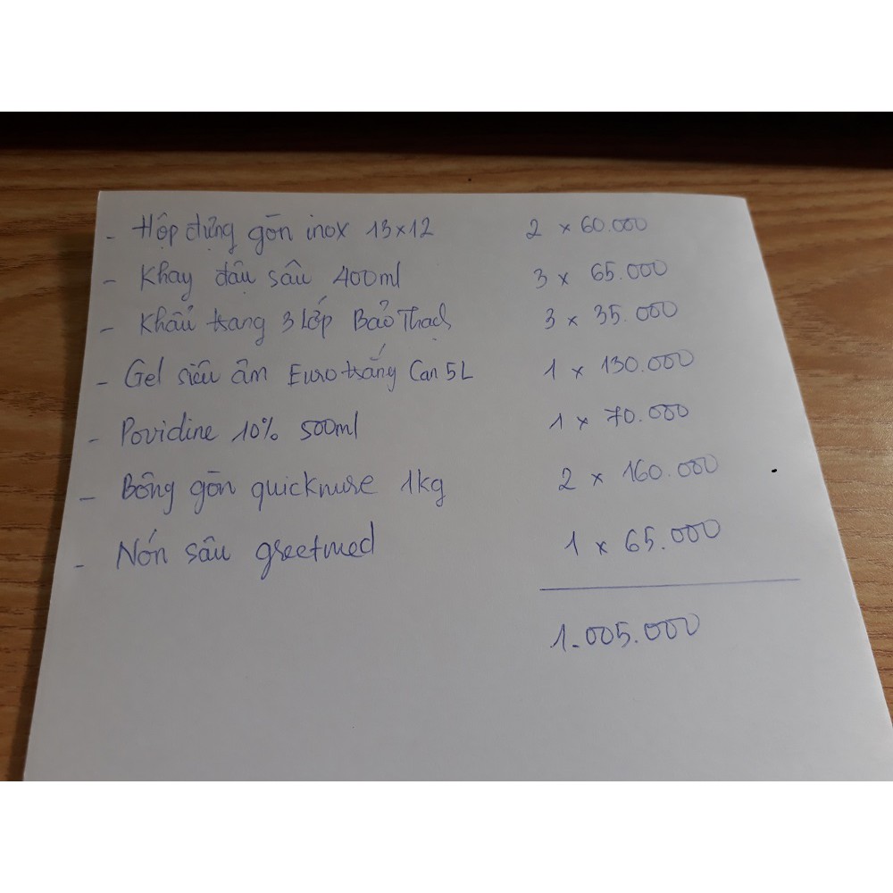 Combo TBYT khách đặt