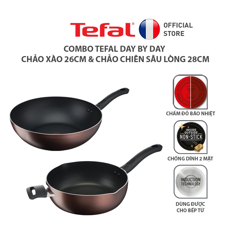 [Mã LIFEHL25 giảm 10% đơn 350K] Combo Tefal Day By Day Chảo xào 26cm & Chảo chiên sâu lòng 28cm
