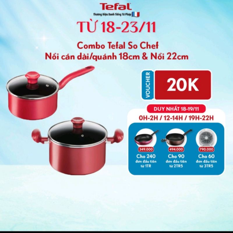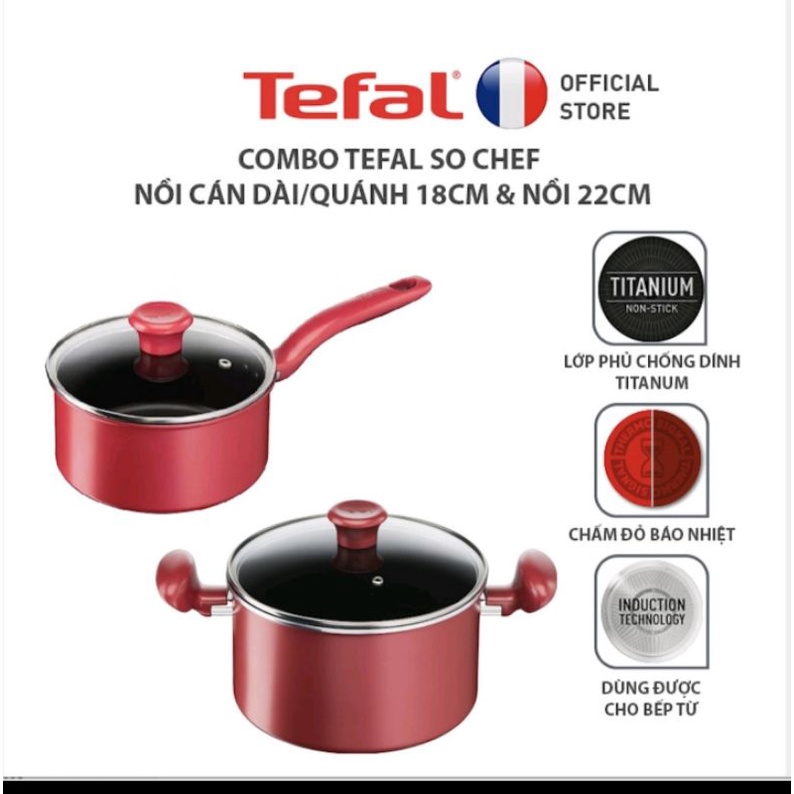 Combo Tefal so chef nồi cán dài/quánh 18cm & Nồi 22cm