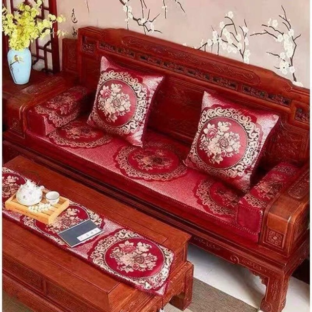Thảm ghế hoàng giá size 2 tấm 57x 57 và 57 x170Mặt trước là chất liệu gấm thêu cao cấp, trong là nệm cao cấp