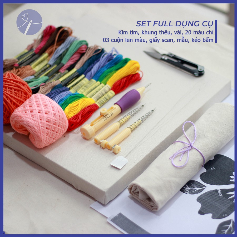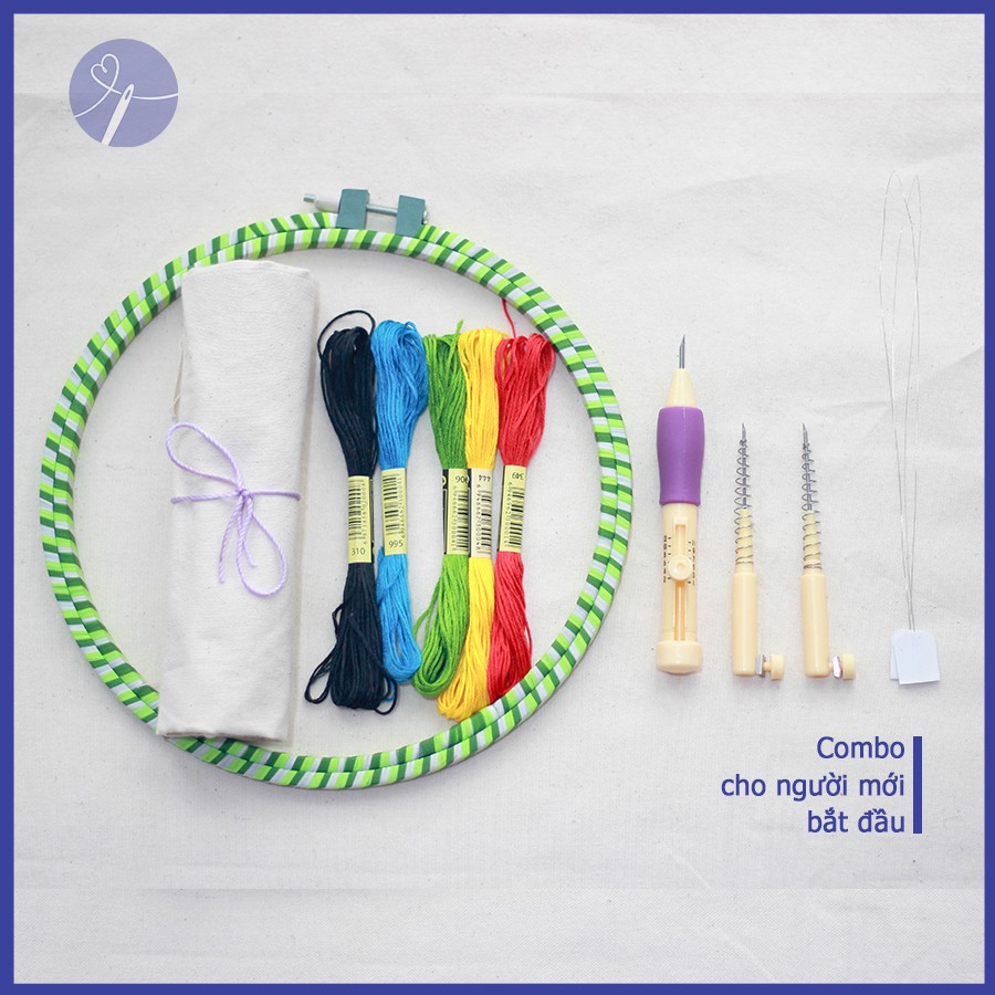 Combo Thêu Nổi Thêu Xù Punch Needle Cho Người Mới Bắt Đầu