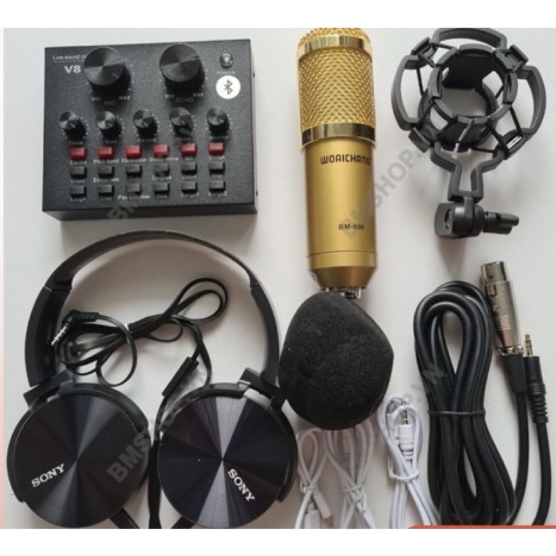 ⁉️Thông tin sản phẩm Combo mic thu âm bm-900 sound card V8 - 2 món