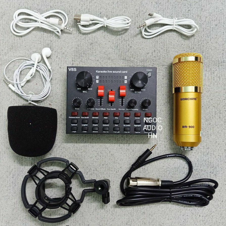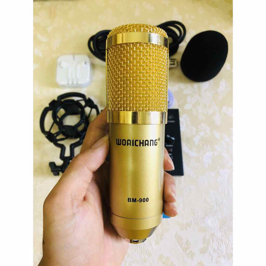 Thiết Bị Âm Thanh > Micro thu âm || Combo thu âm hát karoke live stream Soundcard V8S và Mic BM900 tặng tai phoneCòn hàng