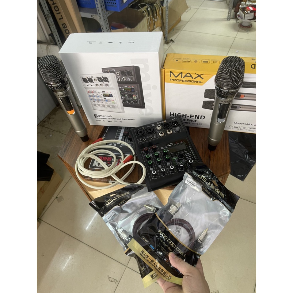 Combo thu âm karaoke livestream đỉnh cao Mixer G4 2022 và Micro Max 32 tặng kèm tai phone HP960 dây hoa sen, dây canon