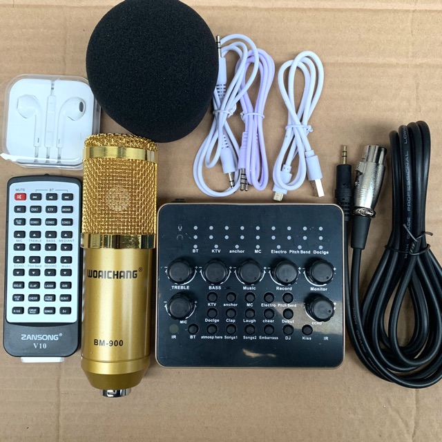 Combo thu âm livestream 3 món Mic BM900-Sound card V10 bản Bluetooth tặng kèm tai nhét