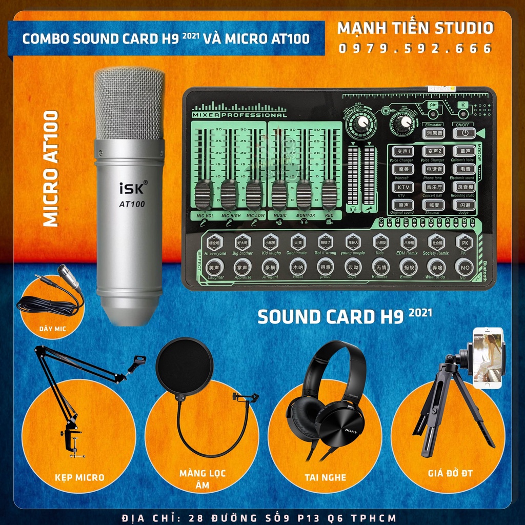 combo thu âm livestream bán hàng onl karaoke tiktok siêu hay micro at100 xịn và sound card H9 2021 tặng full phụ kiện