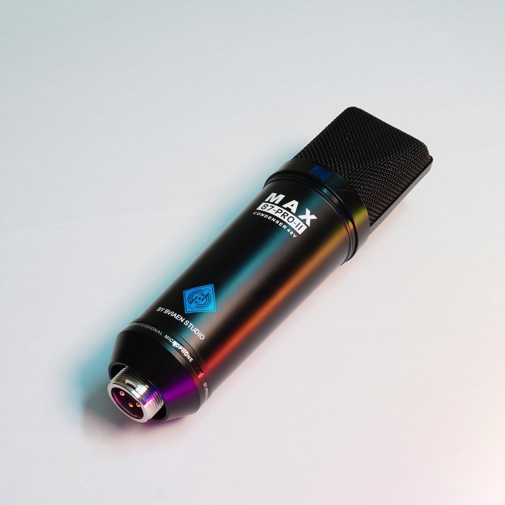 Đáp ứng được ở mức độ khá chuyên nghiệp, mic Max 87-Pro-II thuộc dòng micro condenser là loại micro có độ nhạy cao, khả năng bắt âm chính xác, chất lượng âm thanh phát ra trung thực, không bị mất tiếng bass khi để xa. Bởi sở hữu những đặc tính đó mà Max 87-Pro-II thường được sử dụng phổ biến trong các phòng thu. Ngoài ra, micro này cũng rất thích hợp dùng để thu âm các dạng tín hiệu mềm như: guitar thùng, giọng hát...