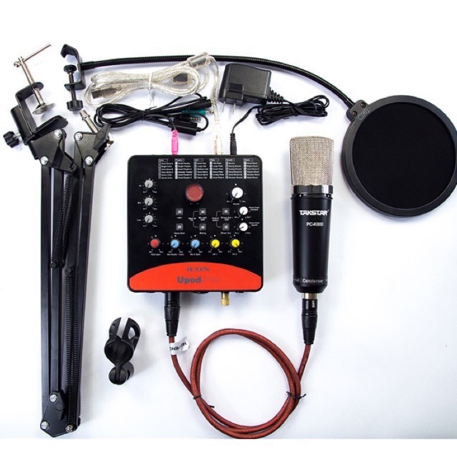 Combo Thu âm Livestream Cao Cấp Mic Takstar PC K600Sound card icon upod pro và chân kẹ