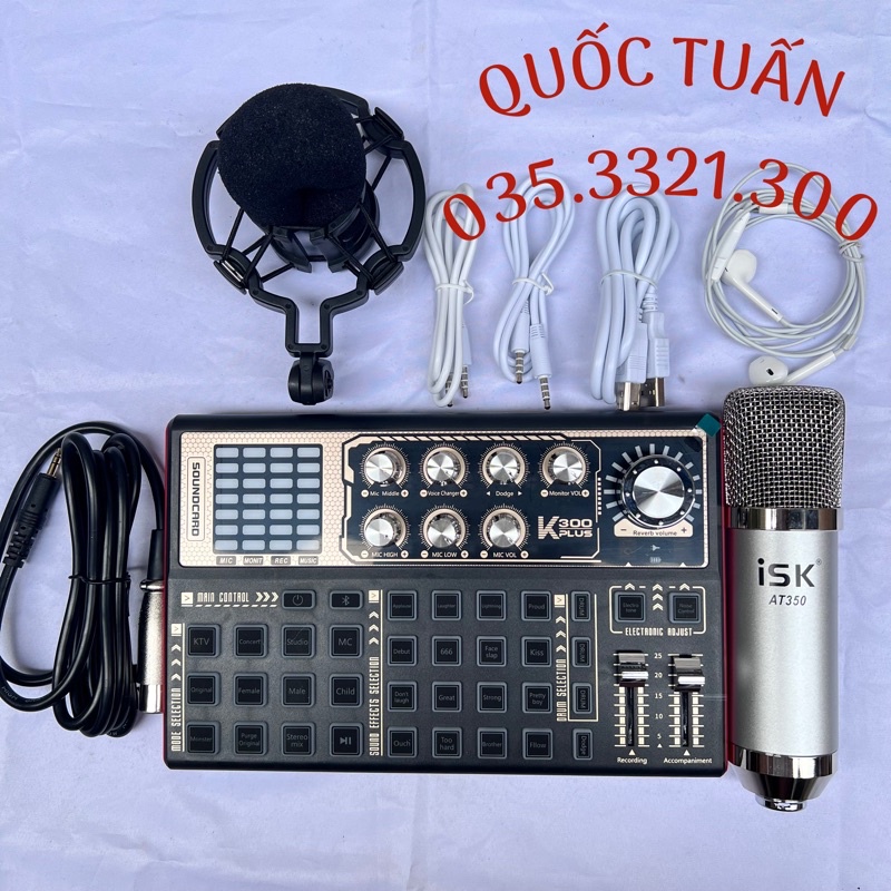 Combo thu âm livestream Card K300 PLUS 2022 Mới Nhất + Mic ISK A350 Bắt âm rất tốt Tặng kèm tai nghe,đầy đủ dây kết nối