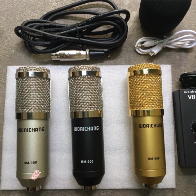 Giới thiệu COMBO THU ÂM LIVESTREAM MIC BM900-SOUND CARD XOX KS108 mới nhất chân kẹp mic màng lọc